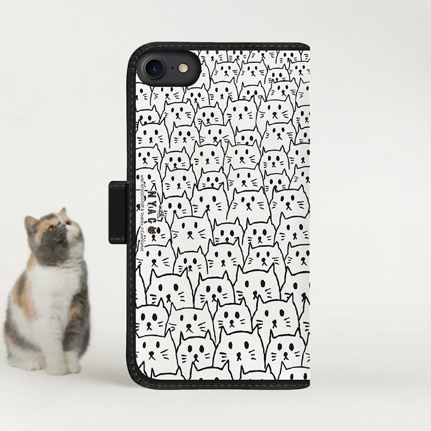 with NYAGO 手帳型 / 厚手 iPhone NYAGO キュート パターン NYAGOがいっぱい ホワイト 2076