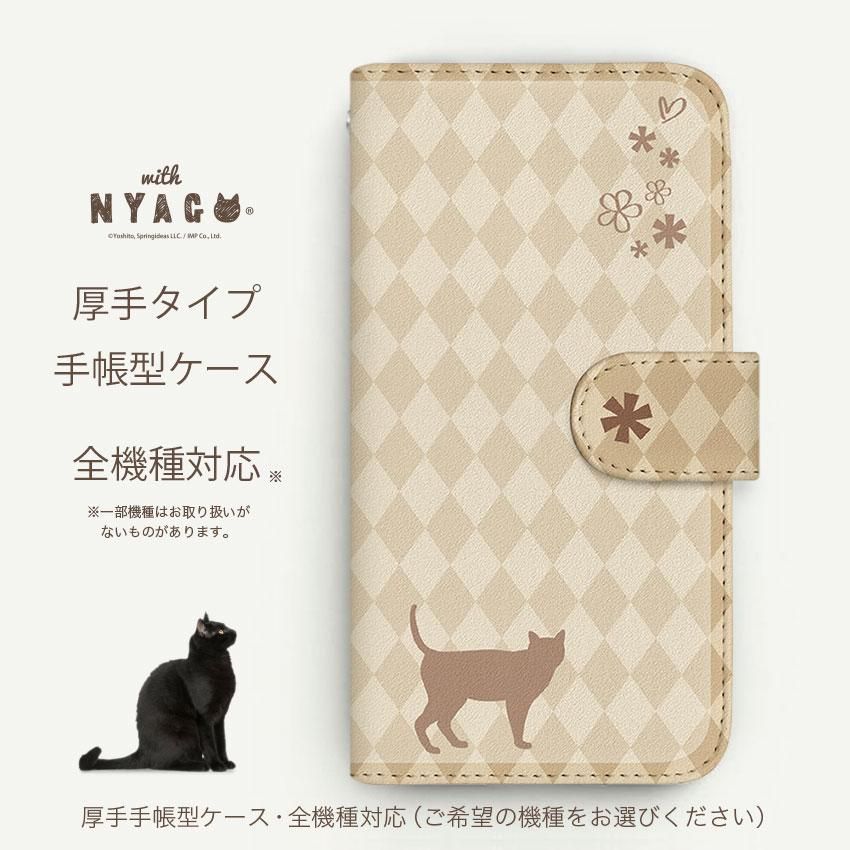 with NYAGO 手帳型 / 厚手 iPhone NYAGO フレンチ フラワー キャット シルエット ダイヤ柄 & なんだにゃ? クリーム 2454