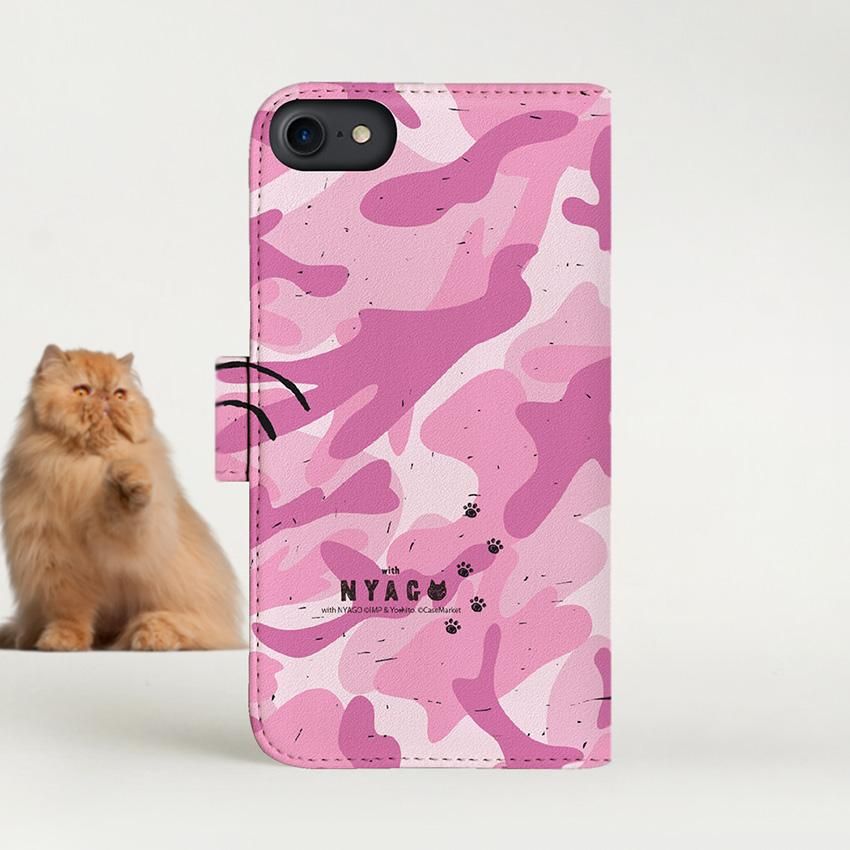with NYAGO 手帳型 / 厚手 docomo Xperia NYAGO にゃんごろう しっぽ カモ柄 ピンク 2251
