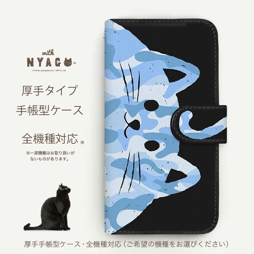 with NYAGO 手帳型 / 厚手 docomo Xperia NYAGO にゃんごろう しっぽ カモ柄 ブルー 2252