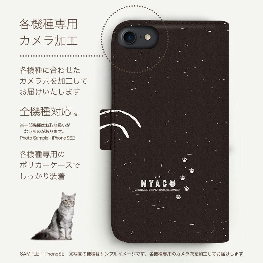 with NYAGO 手帳型 / 厚手 docomo Xperia NYAGO しっぽ モノクロ ビッグ ひげ キャット 2328