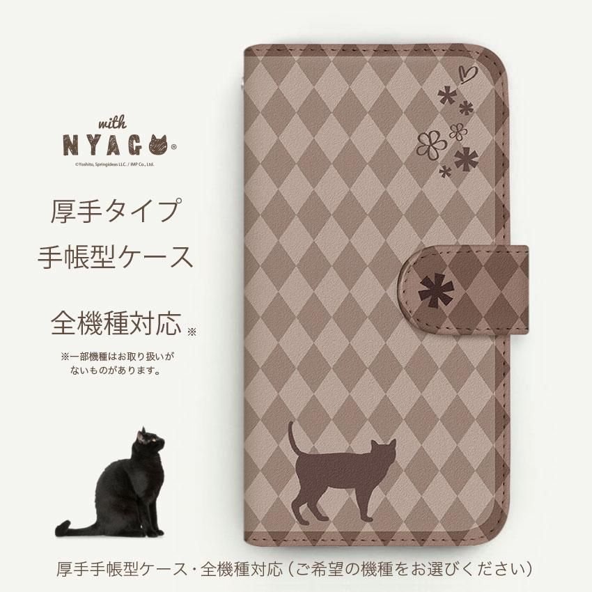 with NYAGO 手帳型 / 厚手 docomo Xperia NYAGO フレンチ フラワー キャット シルエット ダイヤ柄 & なんだにゃ? チョコレート 2455