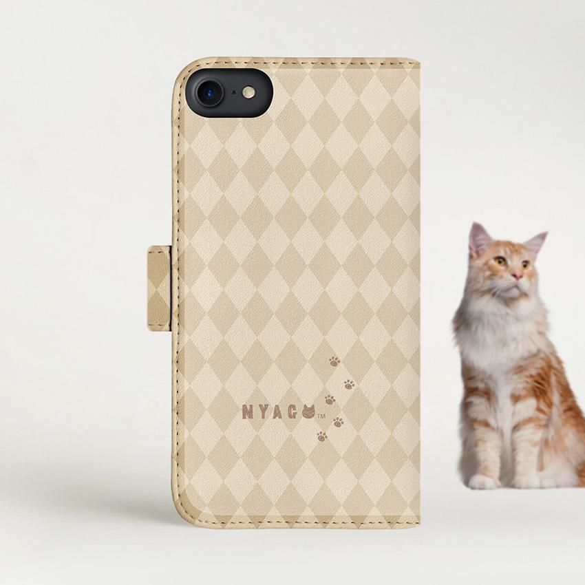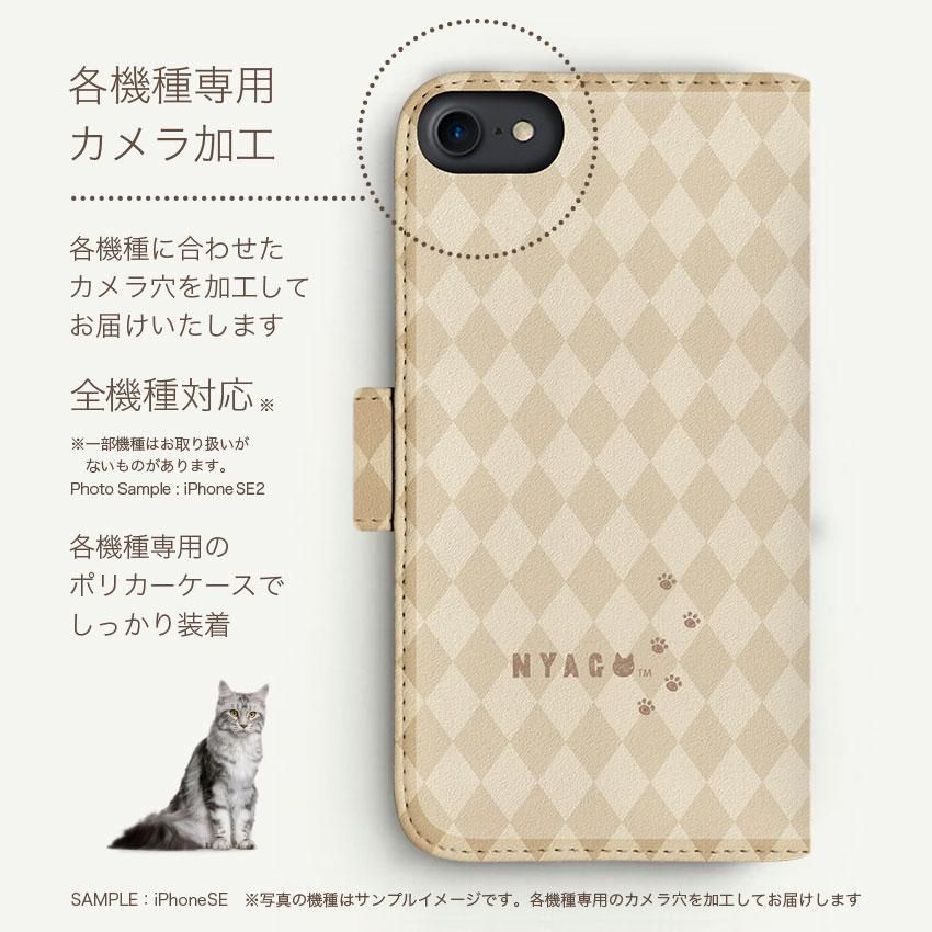with NYAGO 手帳型 / 厚手 docomo Xperia NYAGO フレンチ フラワー キャット シルエット ダイヤ柄 & のびのび?! クリーム 2456