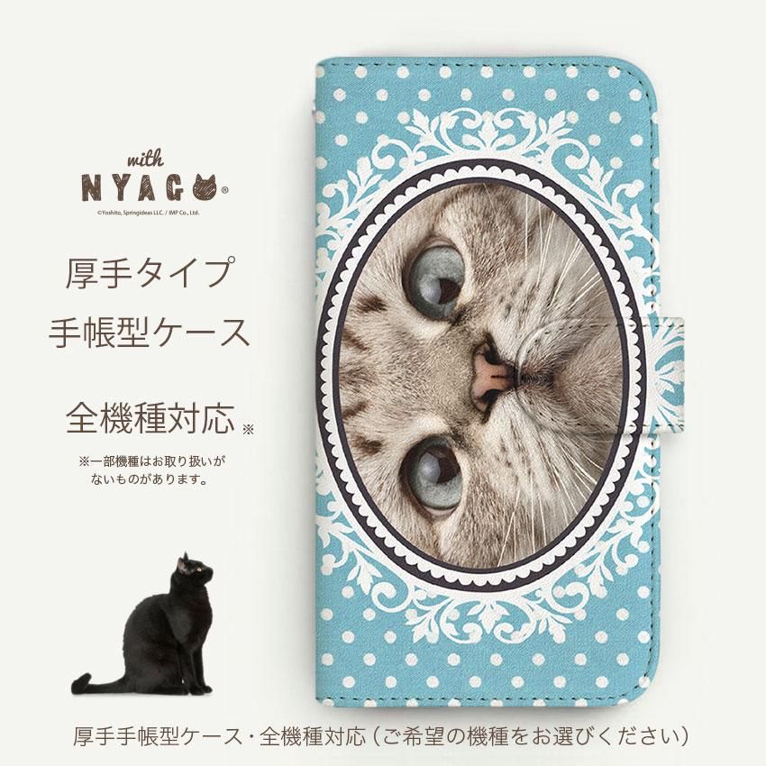 with NYAGO 手帳型 / 厚手 docomo Xperia NYAGO ボタニカルリース 猫のはなチュー ペロペロだにゃ〜。- サマー ドット - ミントブルー 2711