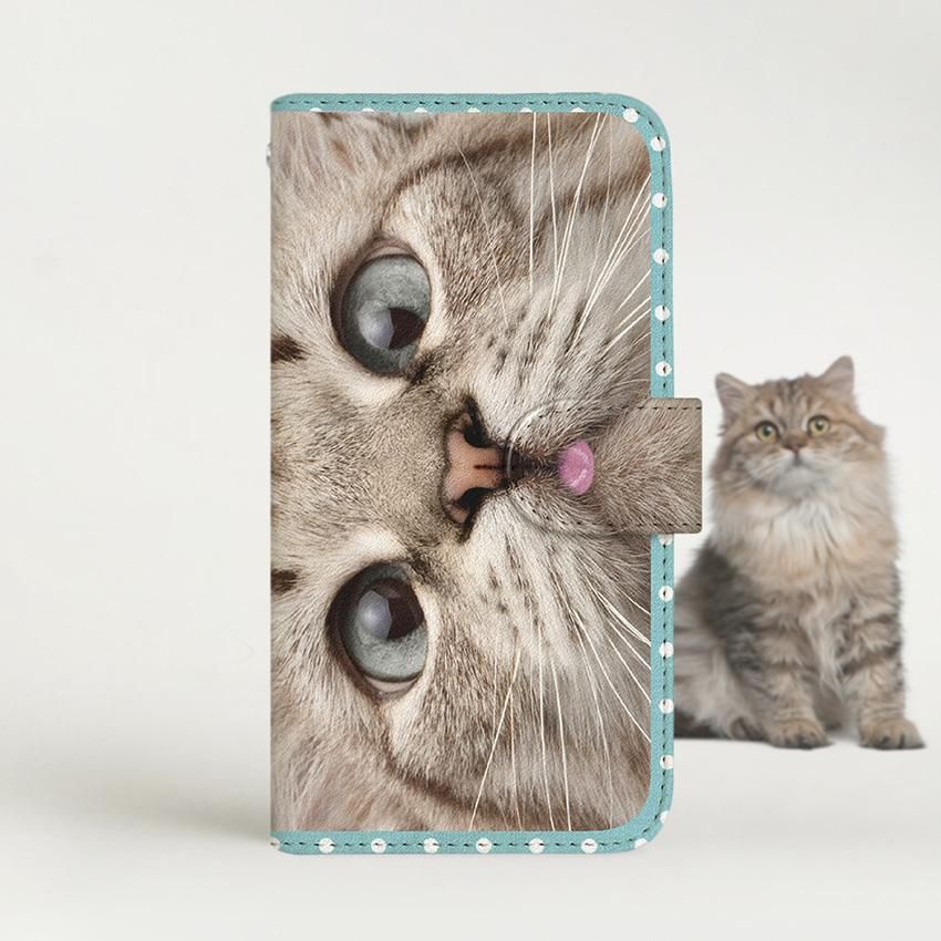 with NYAGO 手帳型 / 厚手 docomo Xperia NYAGO ナチュラル サマー ドット 猫のはなチュー ペロペロだにゃ〜。- 猫ちゃん顔アップ - ミントブルー 2712
