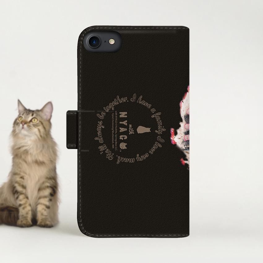 with NYAGO 手帳型 / 厚手 docomo Xperia インディアン ソラちゃん 肉球をペロペロするにゃー。 かわいい猫フェイス手帳 バックブラック 7058