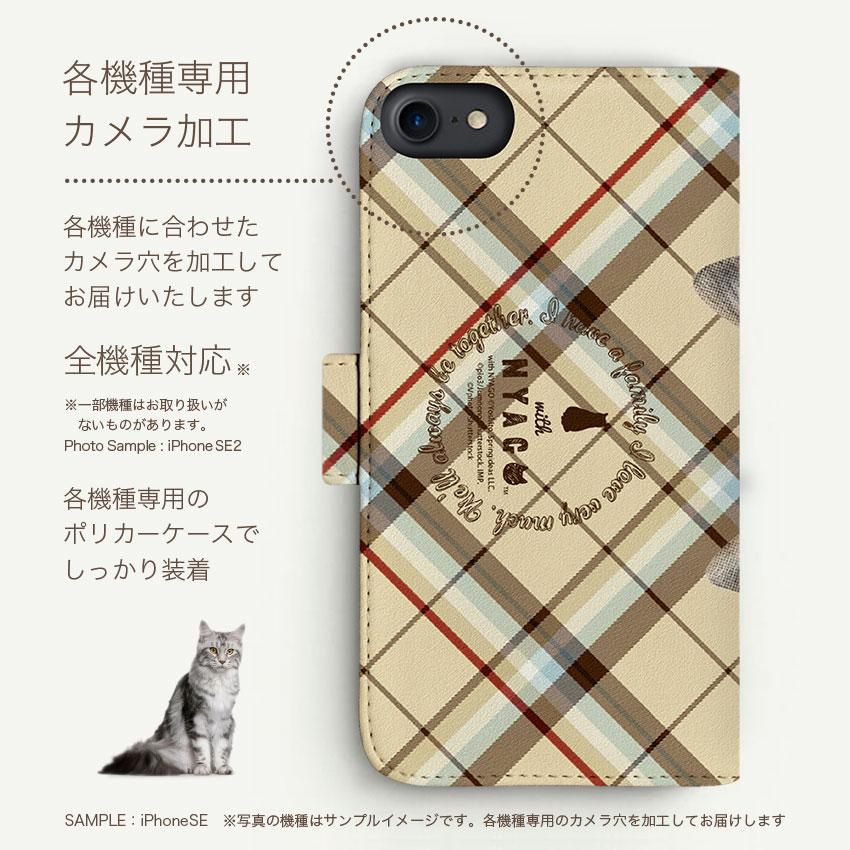 with NYAGO 手帳型 / 厚手 docomo Xperia ソラちゃん 肉球をペロペロするにゃー。 イングランド チェック かわいい猫フェイス手帳 7112