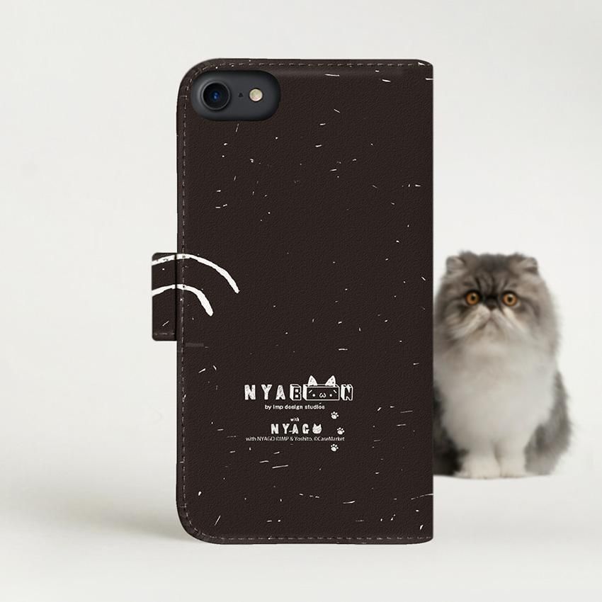 with NYAGO 手帳型 / 厚手 docomo Galaxy NYABON ショボーン (´・ω・`) しっぽ ? モノクロ 2246