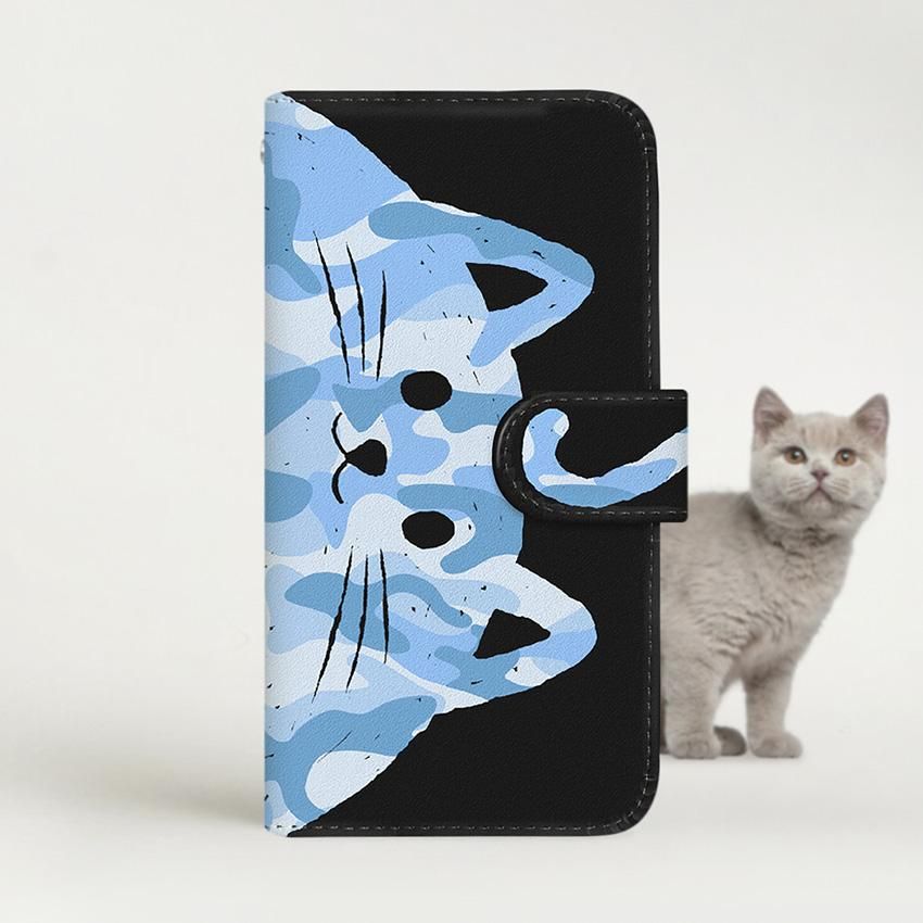 with NYAGO 手帳型 / 厚手 docomo Galaxy NYAGO にゃんごろう しっぽ カモ柄 ブルー 2252