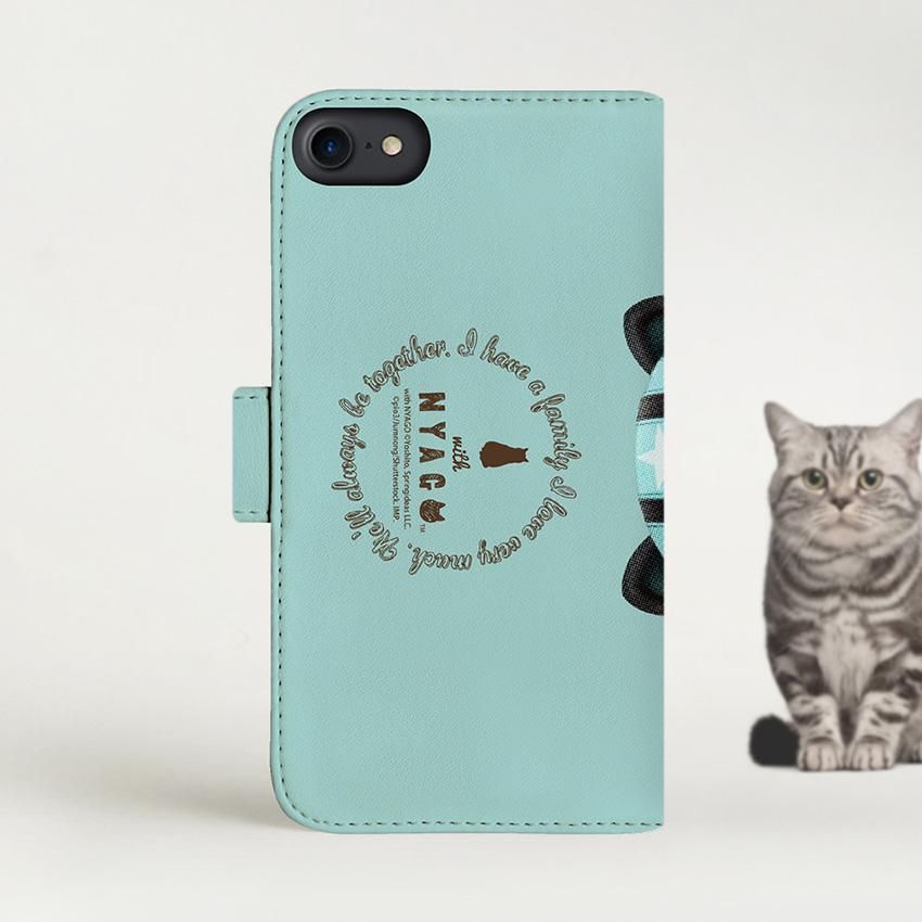 with NYAGO 手帳型 / 厚手 docomo Galaxy ライダー ソラちゃん 肉球をペロペロするにゃー。 かわいい猫フェイス手帳 ミントグリーン 7025