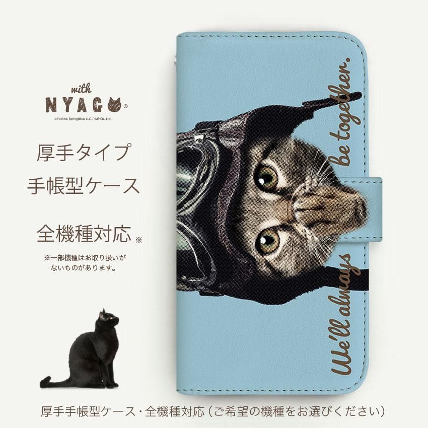 with NYAGO 手帳型 / 厚手 docomo Galaxy パイロット ソラちゃん 肉球をペロペロするにゃー。 かわいい猫フェイス手帳 ホライズン ブルー 7047