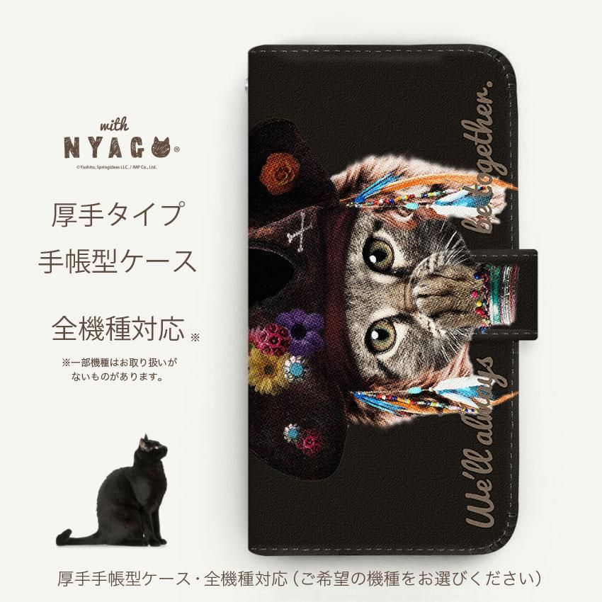 with NYAGO 手帳型 / 厚手 docomo Galaxy パイレーツ ソラちゃん 肉球をペロペロするにゃー。 かわいい猫フェイス手帳 バックブラック 7060