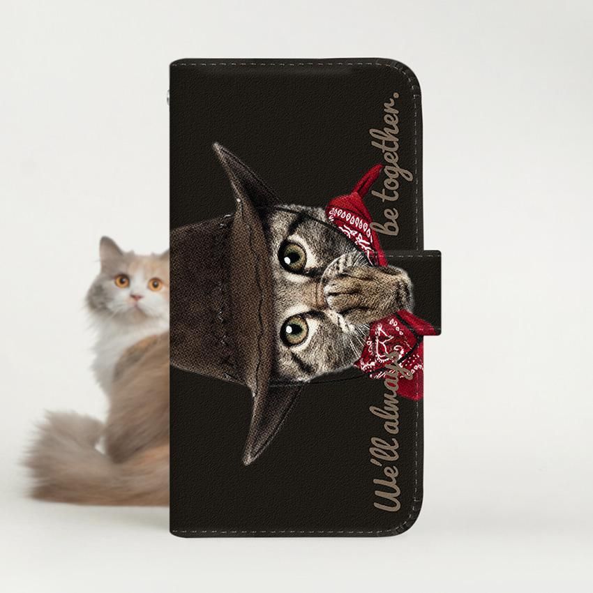 with NYAGO 手帳型 / 厚手 docomo Galaxy カウボーイ ソラちゃん 肉球をペロペロするにゃー。 かわいい猫フェイス手帳 バックブラック 7061