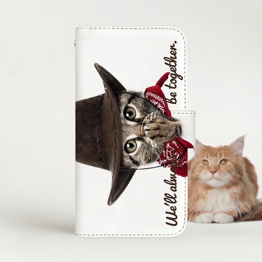 with NYAGO 手帳型 / 厚手 docomo Galaxy カウボーイ ソラちゃん 肉球をペロペロするにゃー。 かわいい猫フェイス ホワイト 7068