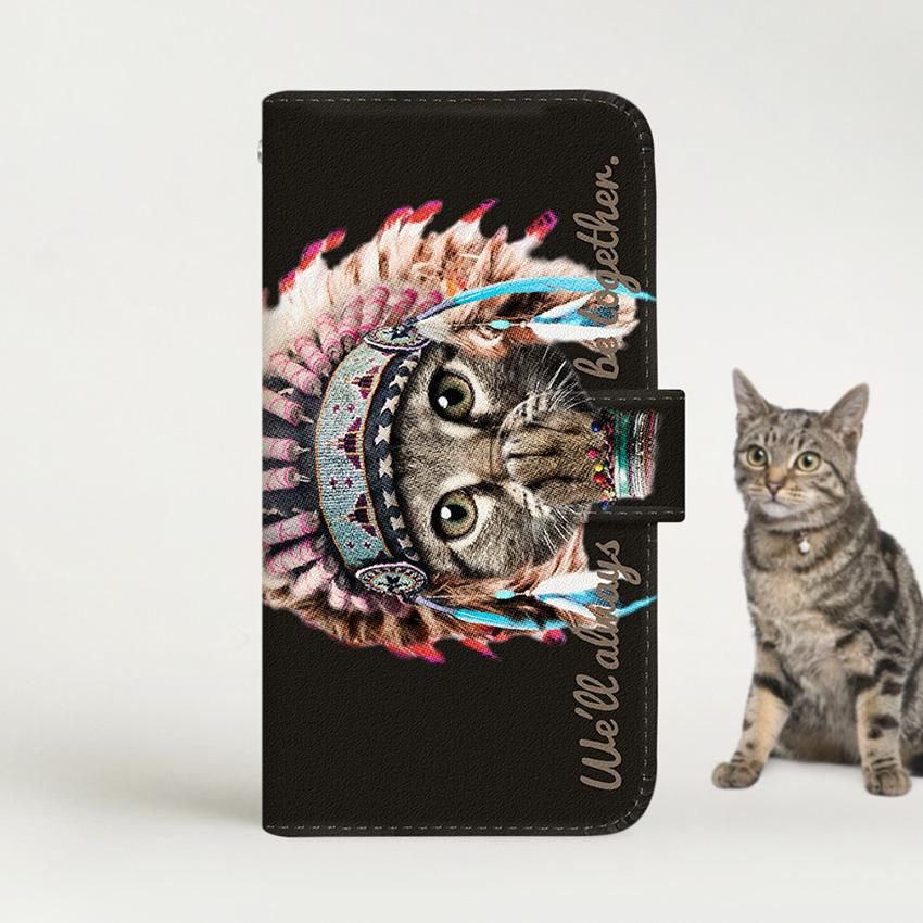 with NYAGO 手帳型 / 厚手 docomo Galaxy インディアン ソラちゃん 肉球をペロペロするにゃー。 かわいい猫フェイス ブラック 7072