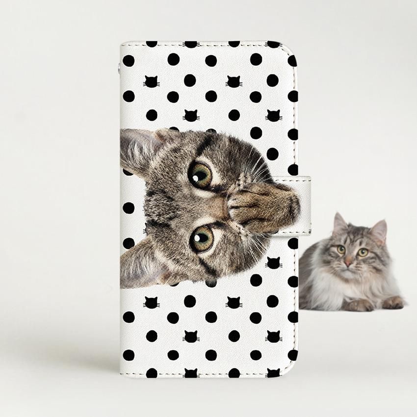 with NYAGO 手帳型 / 厚手 docomo Galaxy ソラちゃん 肉球をペロペロするにゃー。 猫 ドット 水玉 かわいい猫フェイス手帳 ブラック ドット 7118
