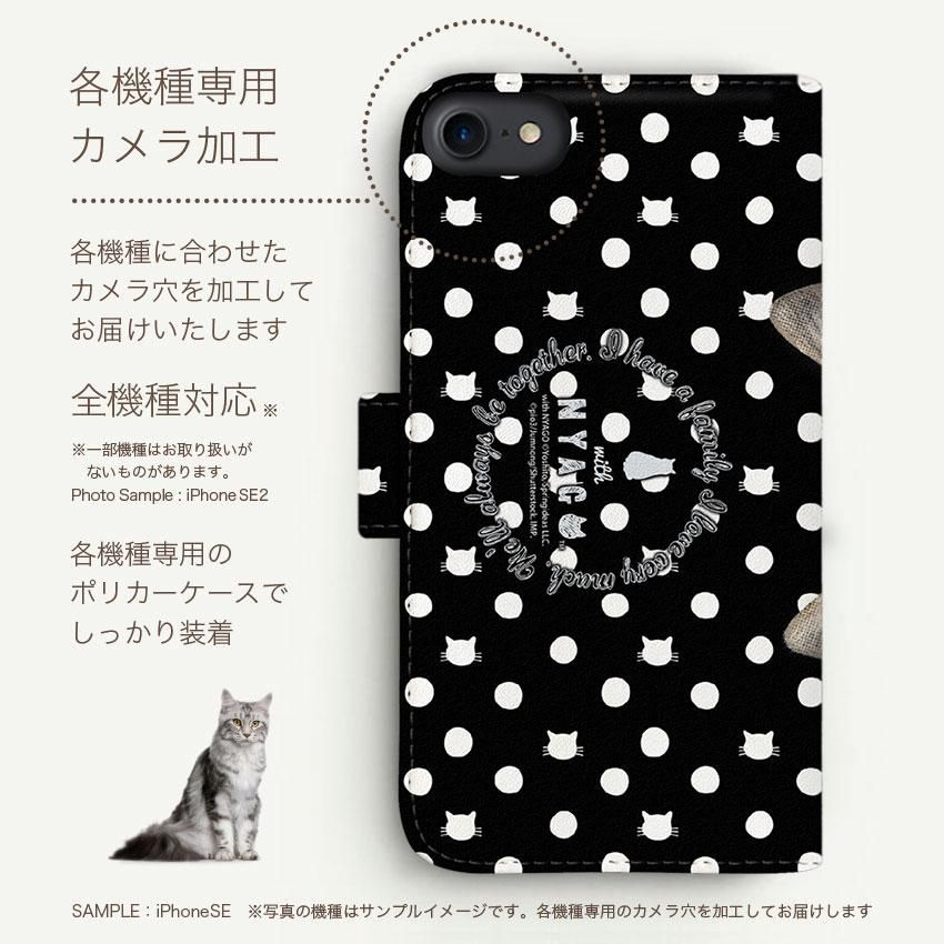with NYAGO 手帳型 / 厚手 docomo Galaxy ソラちゃん 肉球をペロペロするにゃー。 猫 ドット 水玉 かわいい猫フェイス手帳 ホワイト ドット 7119