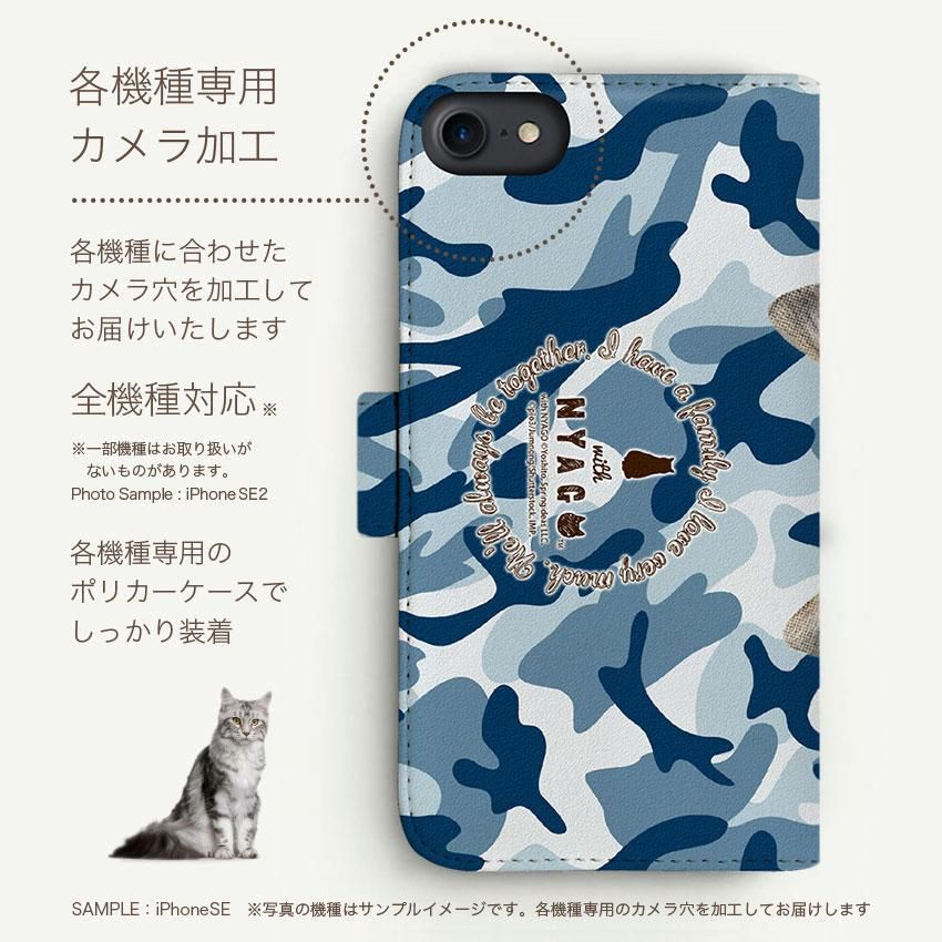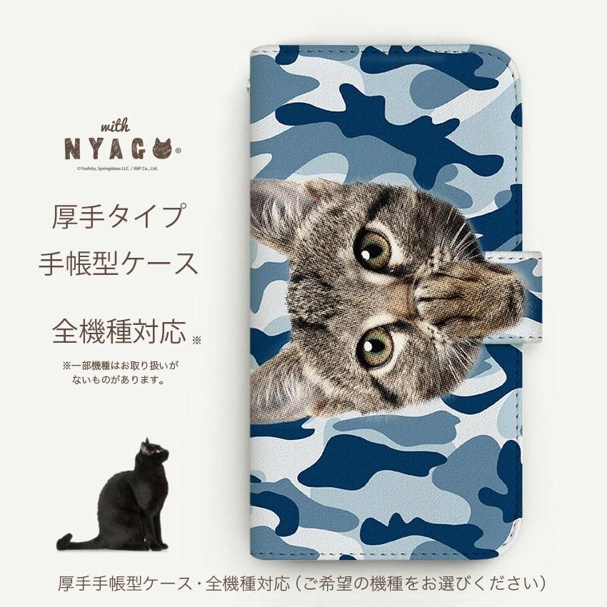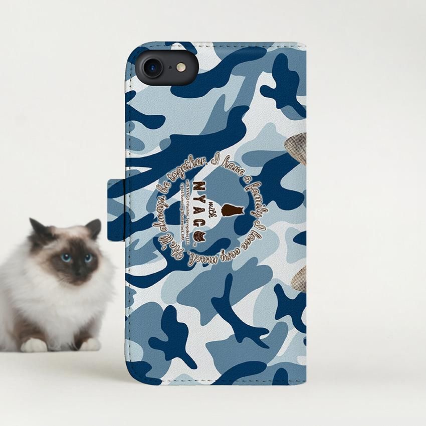 with NYAGO 手帳型 / 厚手 docomo Galaxy ソラちゃん 肉球をペロペロするにゃー。 迷彩柄 カモ柄 かわいい猫フェイス手帳 ブルー 7121