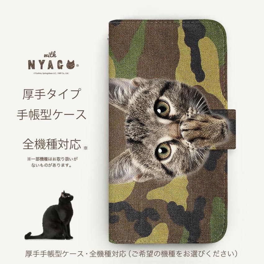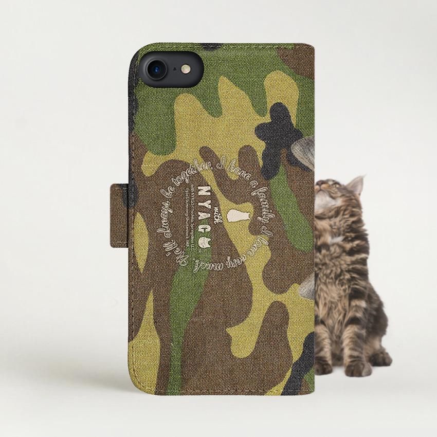 with NYAGO 手帳型 / 厚手 docomo Galaxy ソラちゃん 肉球をペロペロするにゃー。 アーミー 迷彩柄 カモ柄 かわいい猫フェイス手帳 グリーン 7123