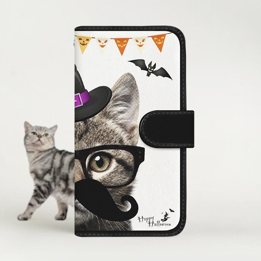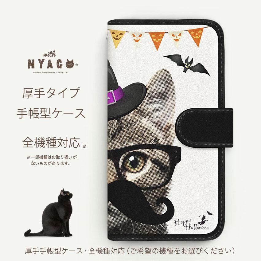 with NYAGO 手帳型 / 厚手 docomo AQUOS NYAGO キュート メガネ フェイス キャット - ビッグ ひげ キャット ハロウィン 2329