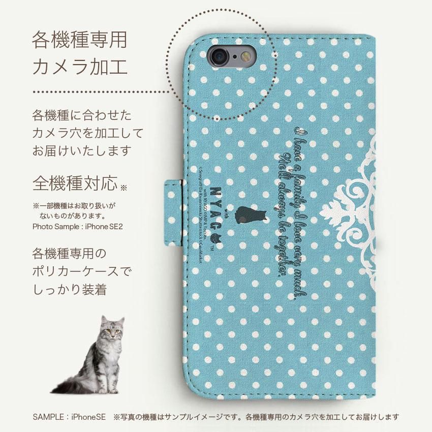 with NYAGO 手帳型 / 厚手 docomo AQUOS NYAGO ボタニカルリース 猫のはなチュー ペロペロだにゃ〜。- サマー ドット - ミントブルー 2711