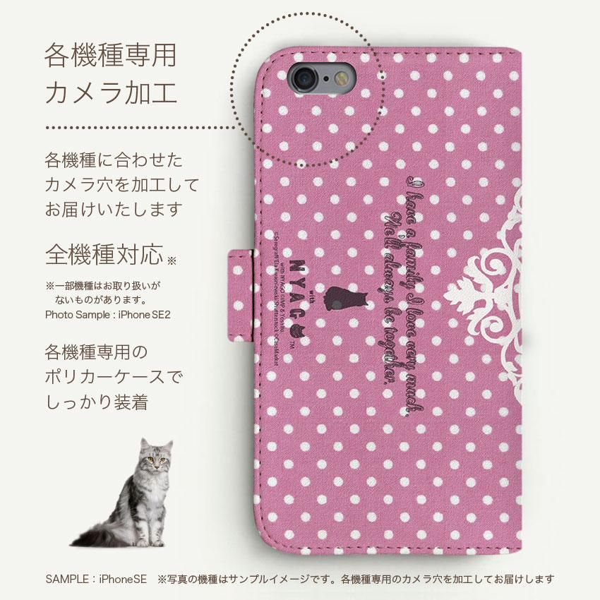 with NYAGO 手帳型 / 厚手 docomo AQUOS NYAGO ボタニカルリース 猫のはなチュー ペロペロだにゃ〜。- サマー ドット - ピンク 2717