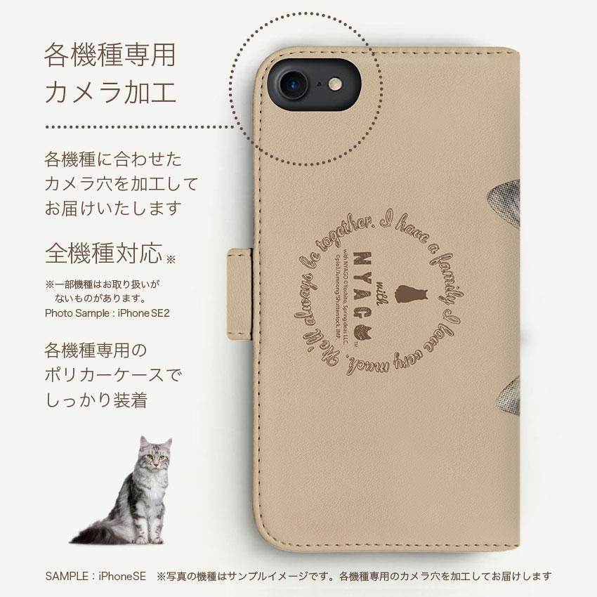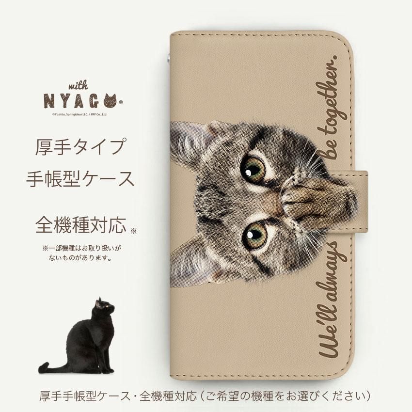 with NYAGO 手帳型 / 厚手 docomo AQUOS ソラちゃん 肉球をペロペロするにゃー。 かわいい猫フェイス手帳 キャメル 7008