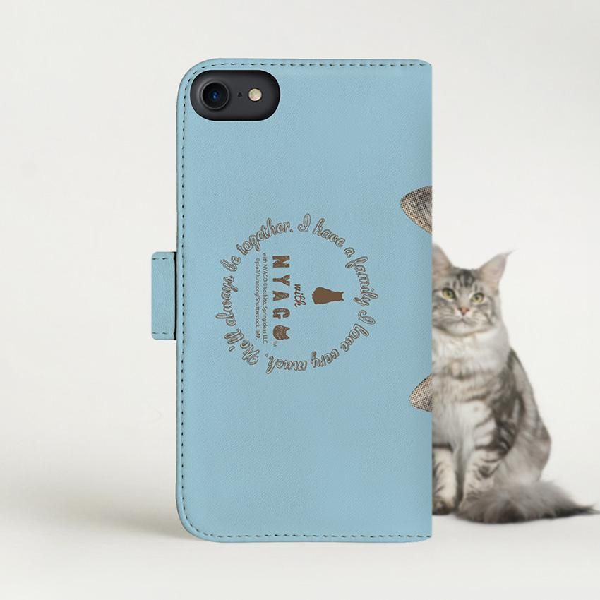 with NYAGO 手帳型 / 厚手 docomo AQUOS ソラちゃん 肉球をペロペロするにゃー。 かわいい猫フェイス手帳 ホライズン ブルー 7012
