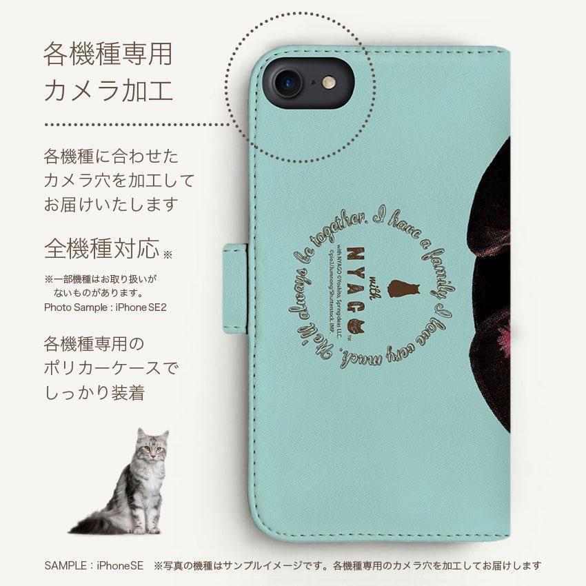 with NYAGO 手帳型 / 厚手 docomo AQUOS パイレーツ ソラちゃん 肉球をペロペロするにゃー。 かわいい猫フェイス手帳 ミントグリーン 7032