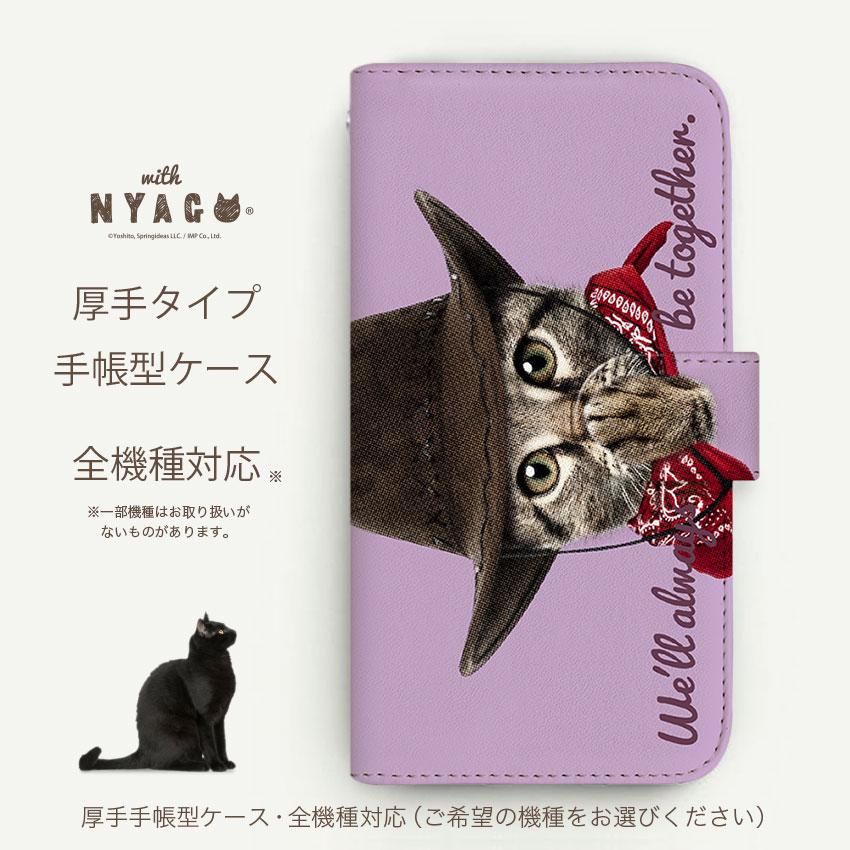 with NYAGO 手帳型 / 厚手 docomo AQUOS カウボーイ ソラちゃん 肉球をペロペロするにゃー。 かわいい猫フェイス手帳 ライト パープル 7038