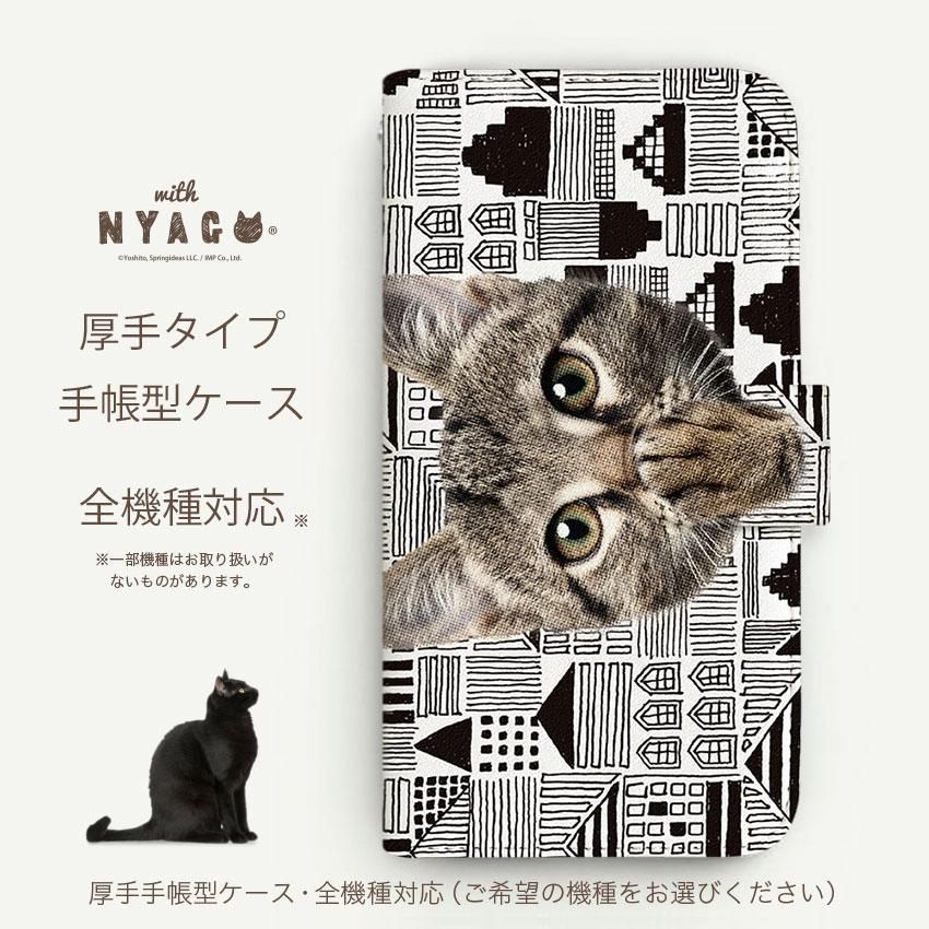 with NYAGO 手帳型 / 厚手 docomo AQUOS ソラちゃん 肉球をペロペロするにゃー。 カウプンキ デザイン かわいい猫フェイス手帳 ホワイト 7106