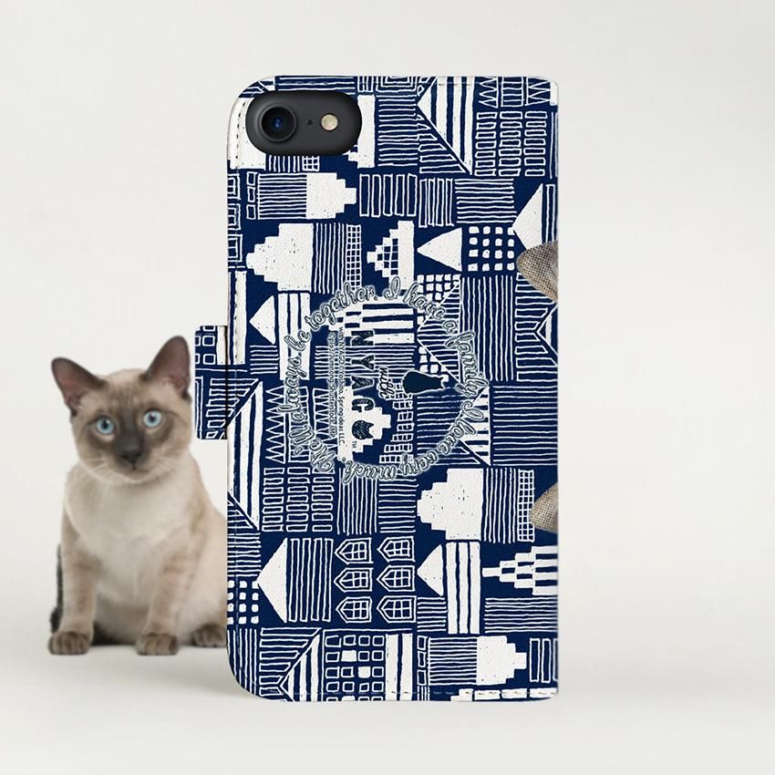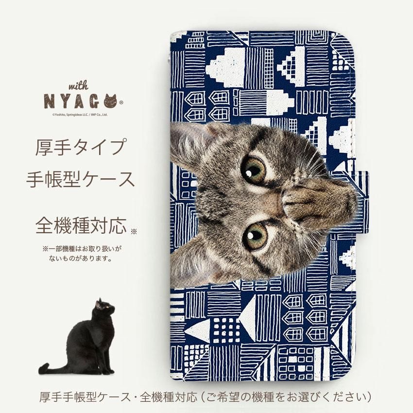 with NYAGO 手帳型 / 厚手 docomo AQUOS ソラちゃん 肉球をペロペロするにゃー。 カウプンキ デザイン かわいい猫フェイス手帳 ネイビー B 7109