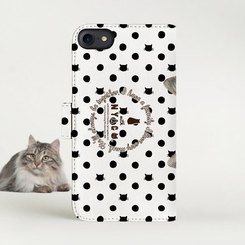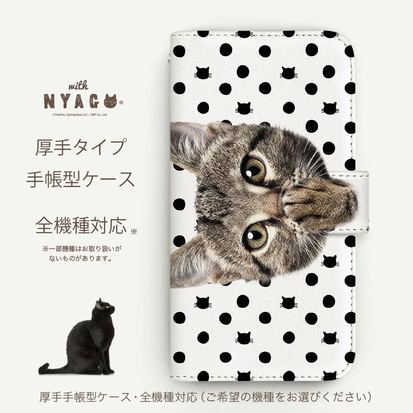 with NYAGO 手帳型 / 厚手 docomo AQUOS ソラちゃん 肉球をペロペロするにゃー。 猫 ドット 水玉 かわいい猫フェイス手帳 ブラック ドット 7118