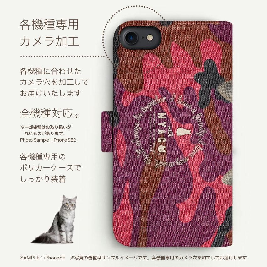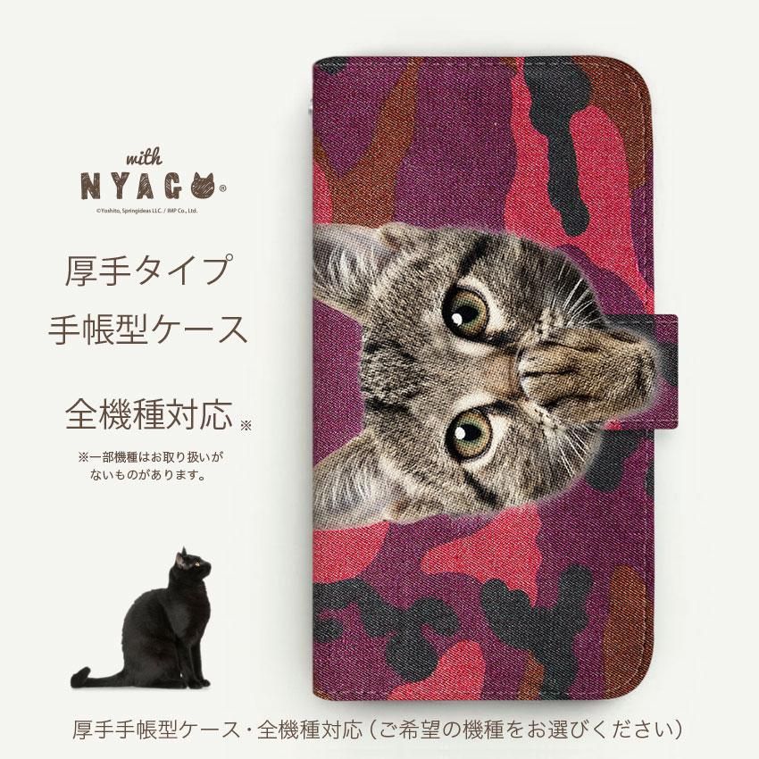 with NYAGO 手帳型 / 厚手 docomo AQUOS ソラちゃん 肉球をペロペロするにゃー。 アーミー 迷彩柄 カモ柄 かわいい猫フェイス手帳 レッド 7126