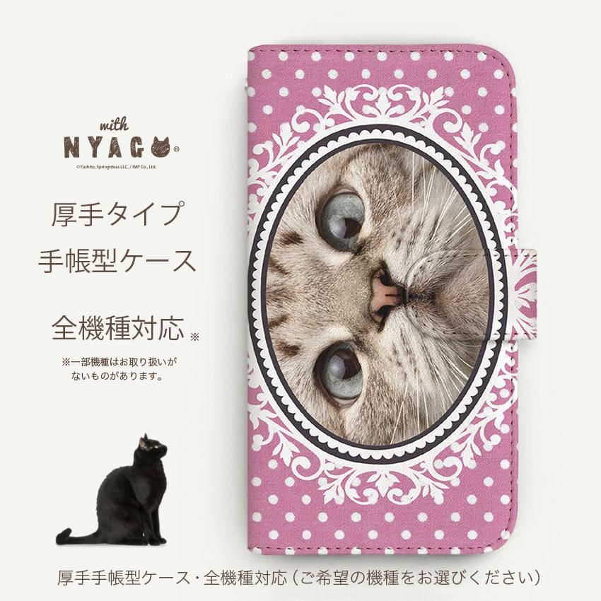 with NYAGO 手帳型 / 厚手 docomo その他 NYAGO ボタニカルリース 猫のはなチュー ペロペロだにゃ〜。- サマー ドット - ピンク 2717