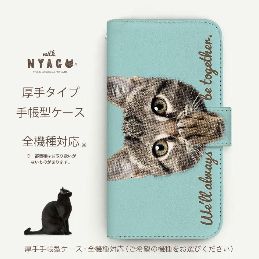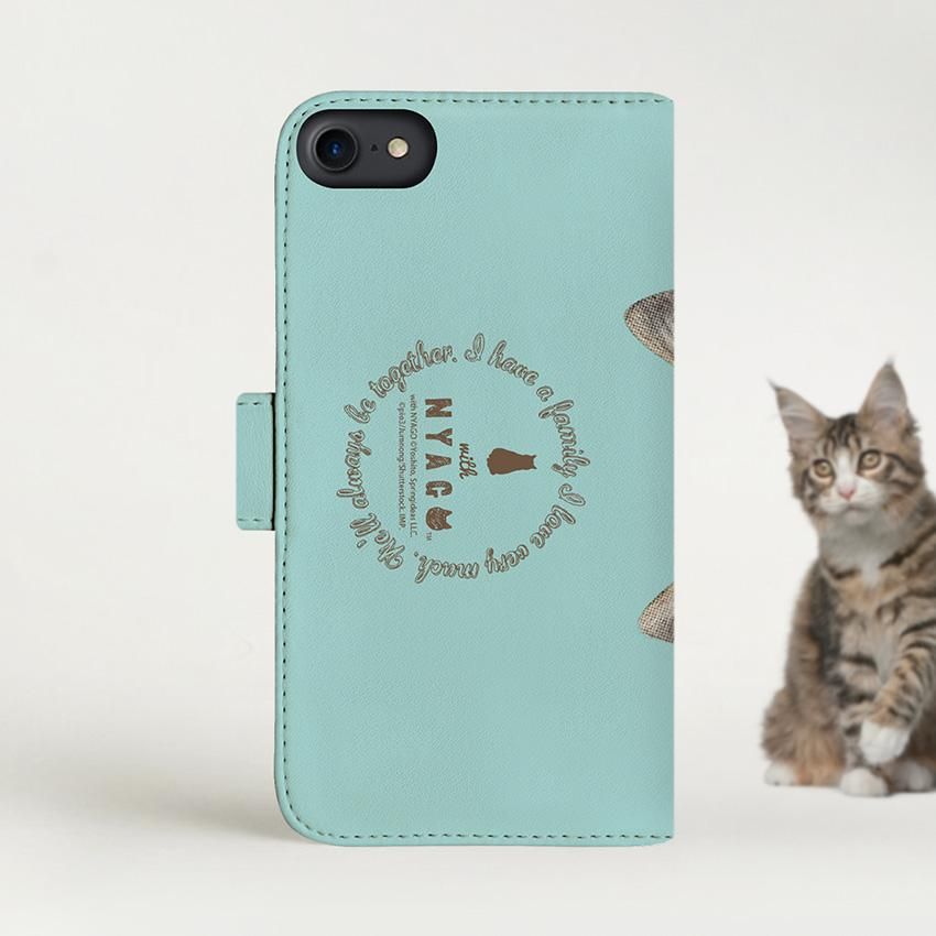 with NYAGO 手帳型 / 厚手 docomo その他 ソラちゃん 肉球をペロペロするにゃー。 かわいい猫フェイス手帳 ミントグリーン 7011