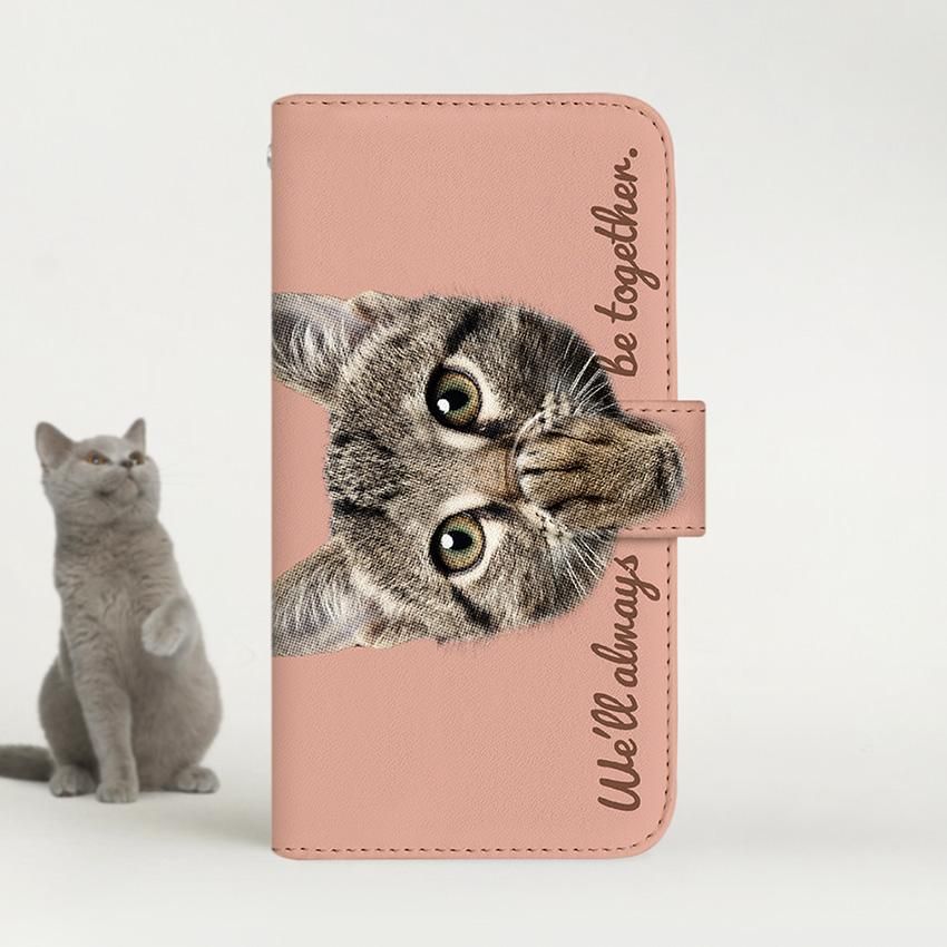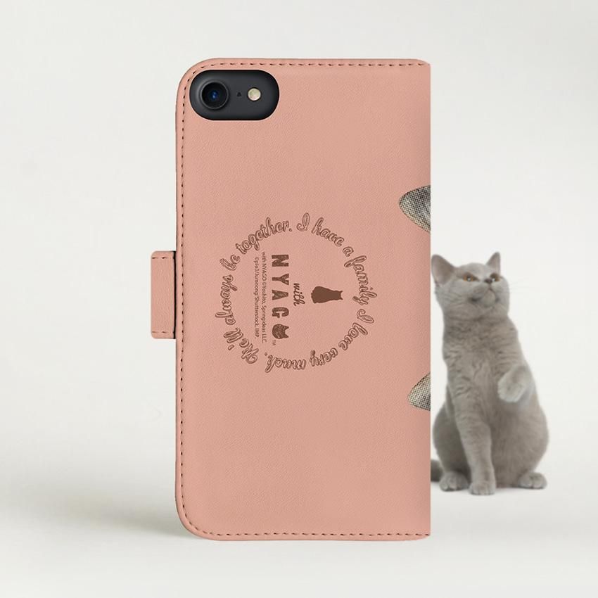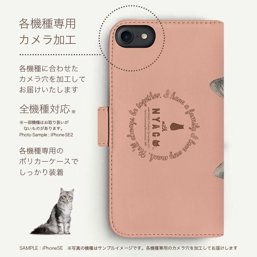 with NYAGO 手帳型 / 厚手 docomo その他 ソラちゃん 肉球をペロペロするにゃー。 かわいい猫フェイス手帳 バーミリオン オレンジ 7014