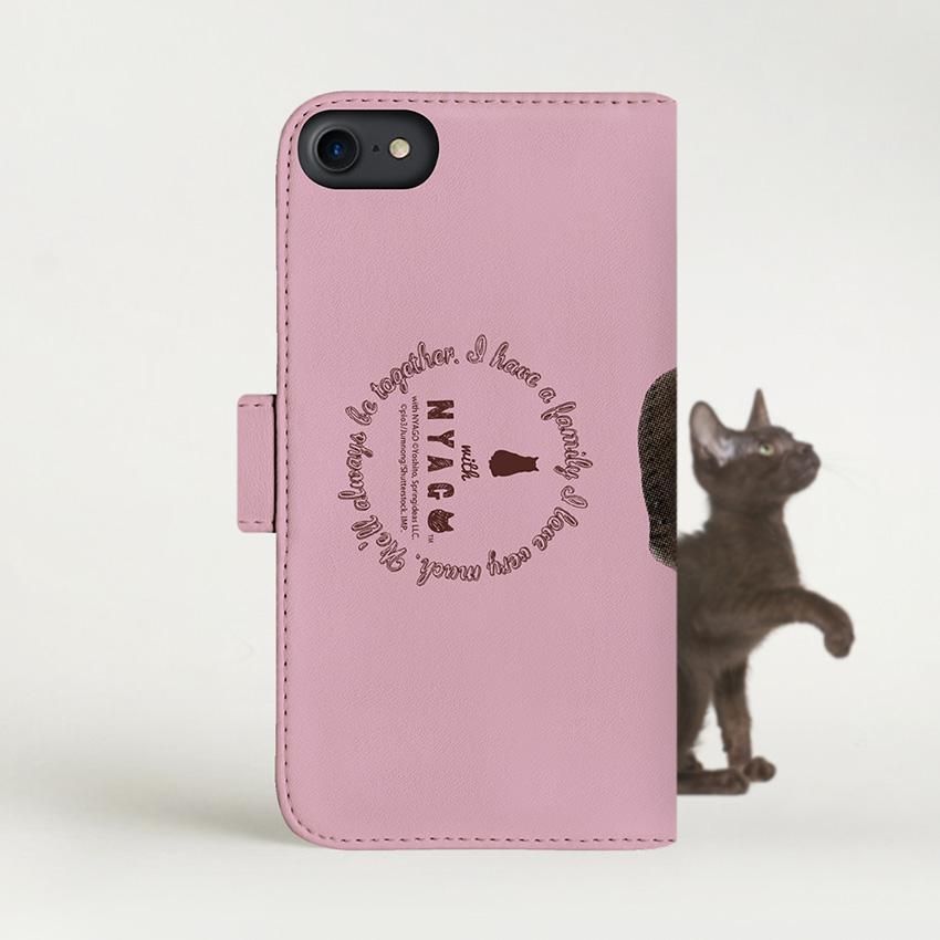 with NYAGO 手帳型 / 厚手 docomo その他 カウボーイ ソラちゃん 肉球をペロペロするにゃー。 かわいい猫フェイス手帳 スウィート ピンク 7037