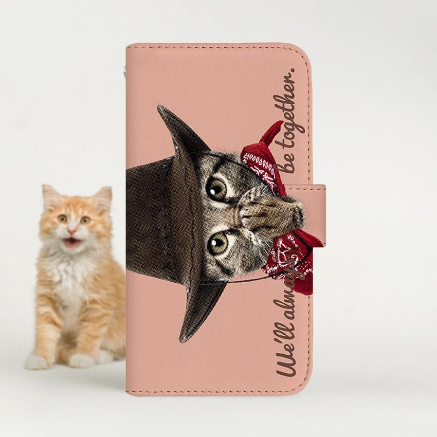 with NYAGO 手帳型 / 厚手 docomo その他 カウボーイ ソラちゃん 肉球をペロペロするにゃー。 かわいい猫フェイス手帳 バーミリオン オレンジ 7042