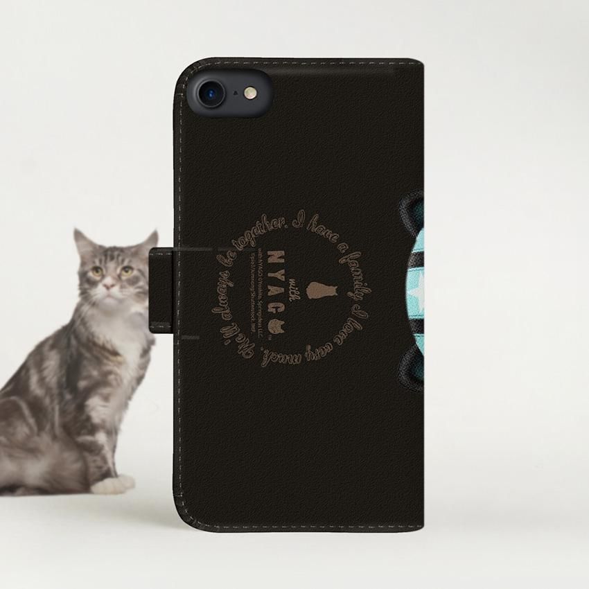 with NYAGO 手帳型 / 厚手 docomo その他 ライダー ソラちゃん 肉球をペロペロするにゃー。 かわいい猫フェイス ブラック 7073