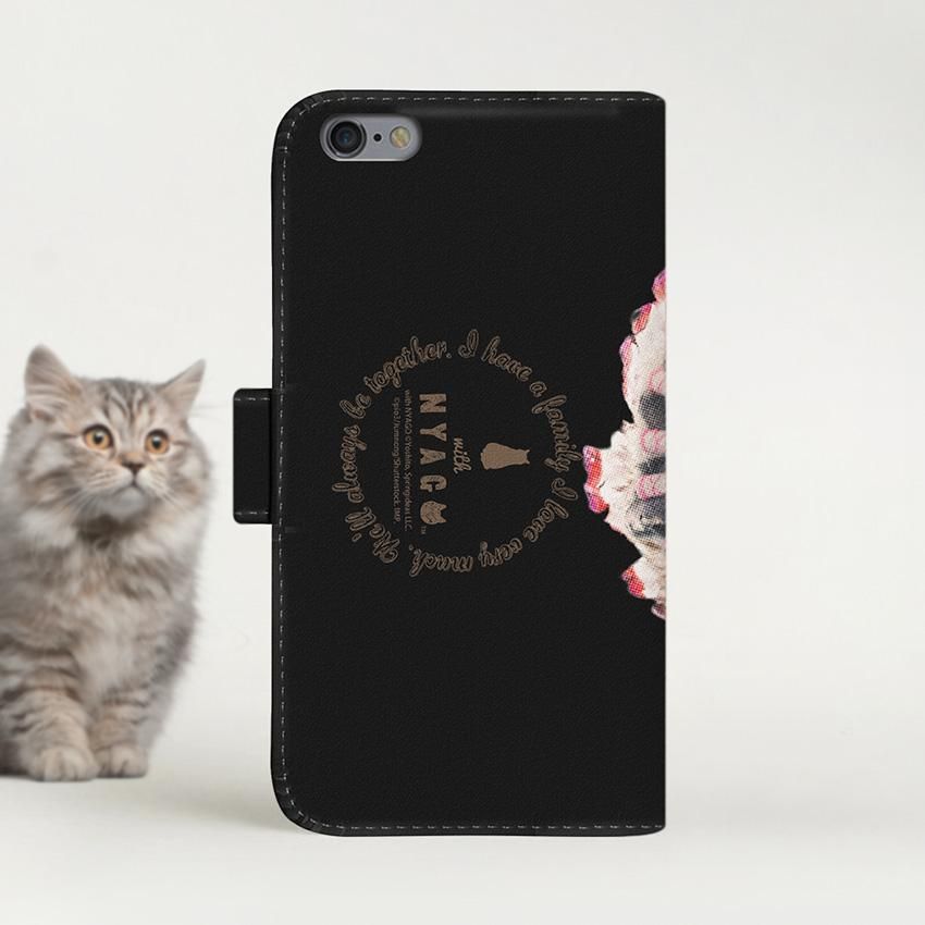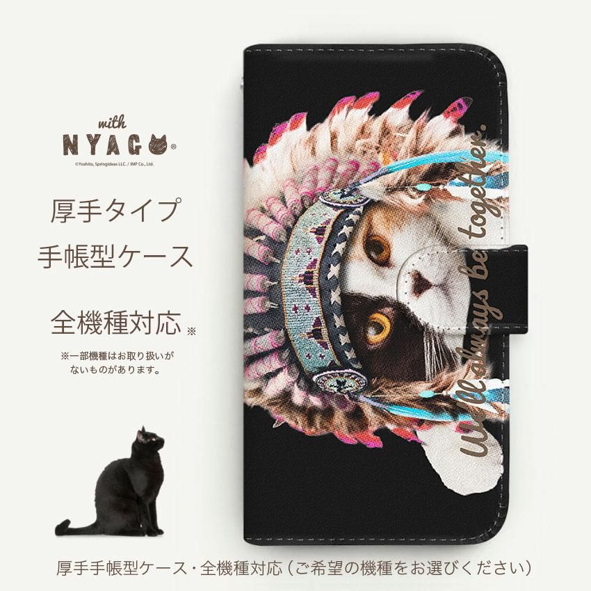 with NYAGO 手帳型 / 厚手 au Xperia インディアン オスカーちゃん 肉球をペロペロするにゃー。 かわいい猫フェイス手帳 ブラック 7084