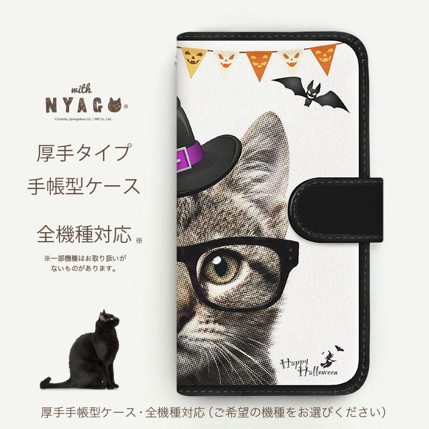 with NYAGO 手帳型 / 厚手 au Galaxy NYAGO キュート メガネ ソラちゃん フェイス キャット ? ハロウィン ブラック 2155