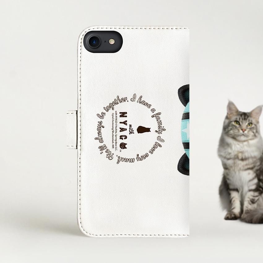 with NYAGO 手帳型 / 厚手 au Galaxy ライダー ソラちゃん 肉球をペロペロするにゃー。 かわいい猫フェイス手帳 ミラノ ホワイト 7003