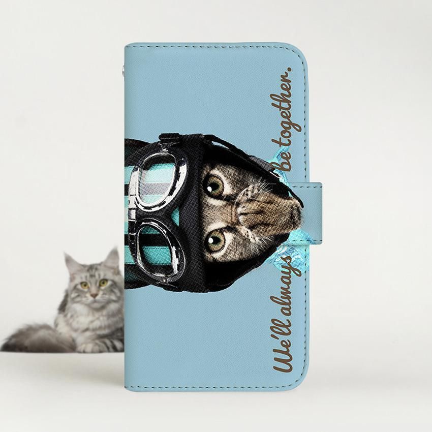 with NYAGO 手帳型 / 厚手 au Galaxy ライダー ソラちゃん 肉球をペロペロするにゃー。 かわいい猫フェイス手帳 ホライズン ブルー 7026