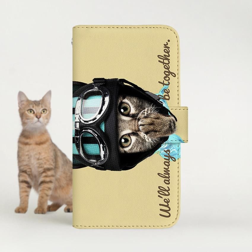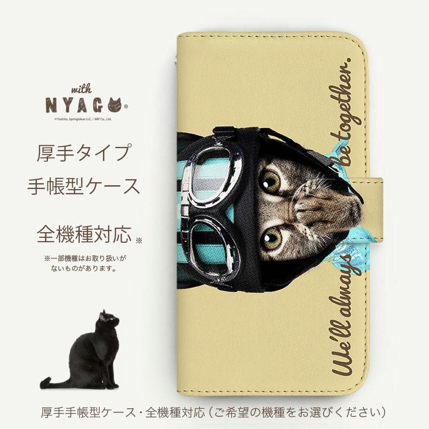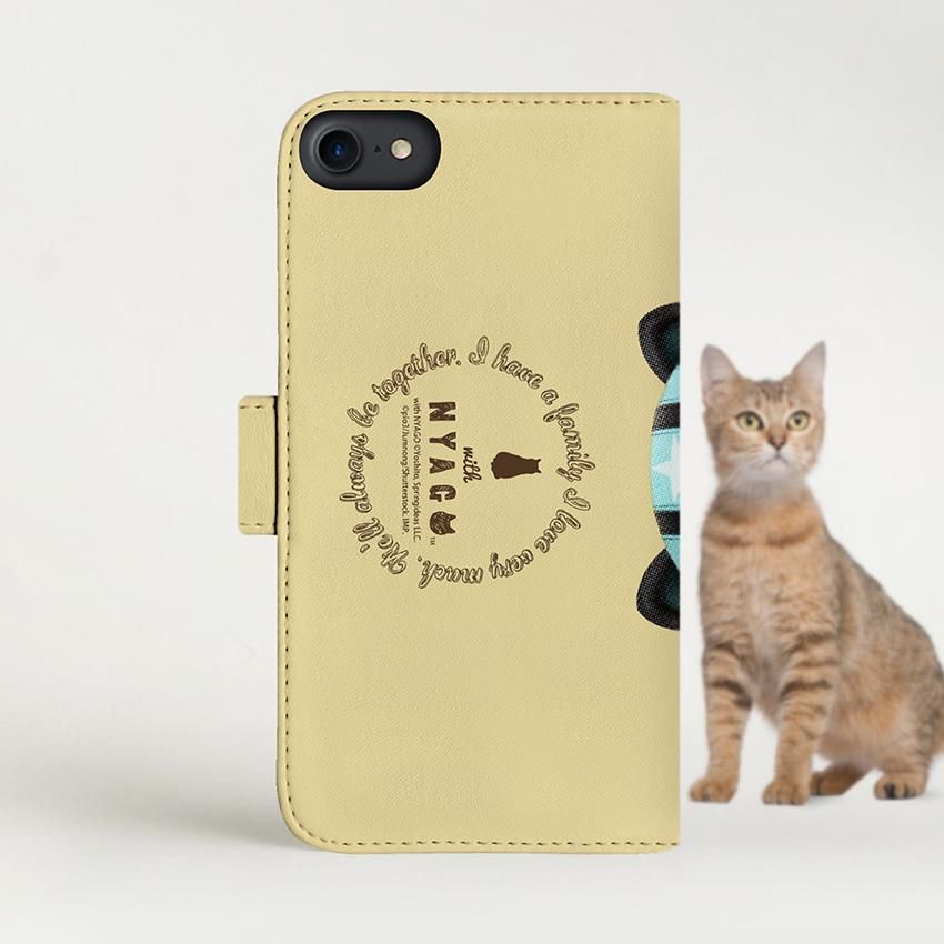 with NYAGO 手帳型 / 厚手 au Galaxy ライダー ソラちゃん 肉球をペロペロするにゃー。 かわいい猫フェイス手帳 クリーム イエロー 7027