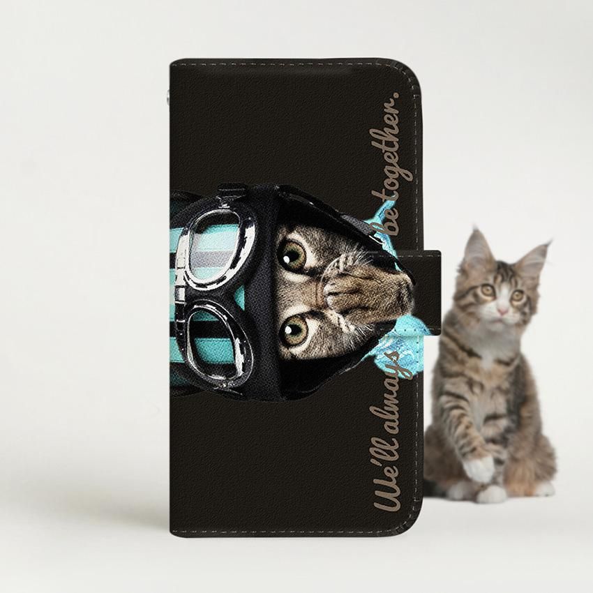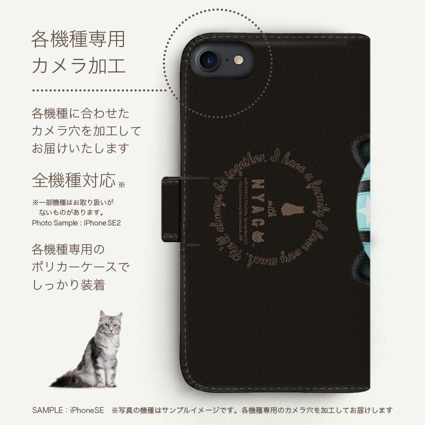with NYAGO 手帳型 / 厚手 au Galaxy ライダー ソラちゃん 肉球をペロペロするにゃー。 かわいい猫フェイス手帳 バックブラック 7059