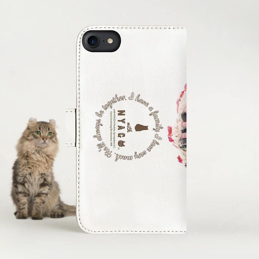 with NYAGO 手帳型 / 厚手 au Galaxy インディアン ソラちゃん 肉球をペロペロするにゃー。 かわいい猫フェイス ホワイト 7065