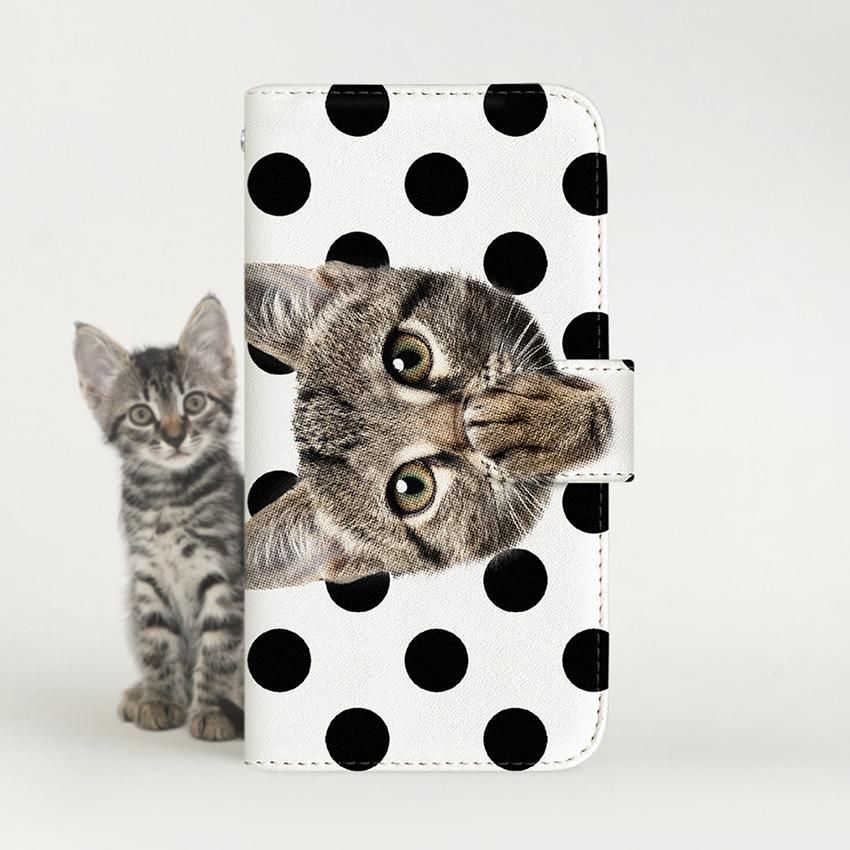 with NYAGO 手帳型 / 厚手 au Galaxy ソラちゃん 肉球をペロペロするにゃー。 ドット 水玉 かわいい猫フェイス手帳 ブラック ドット 7116