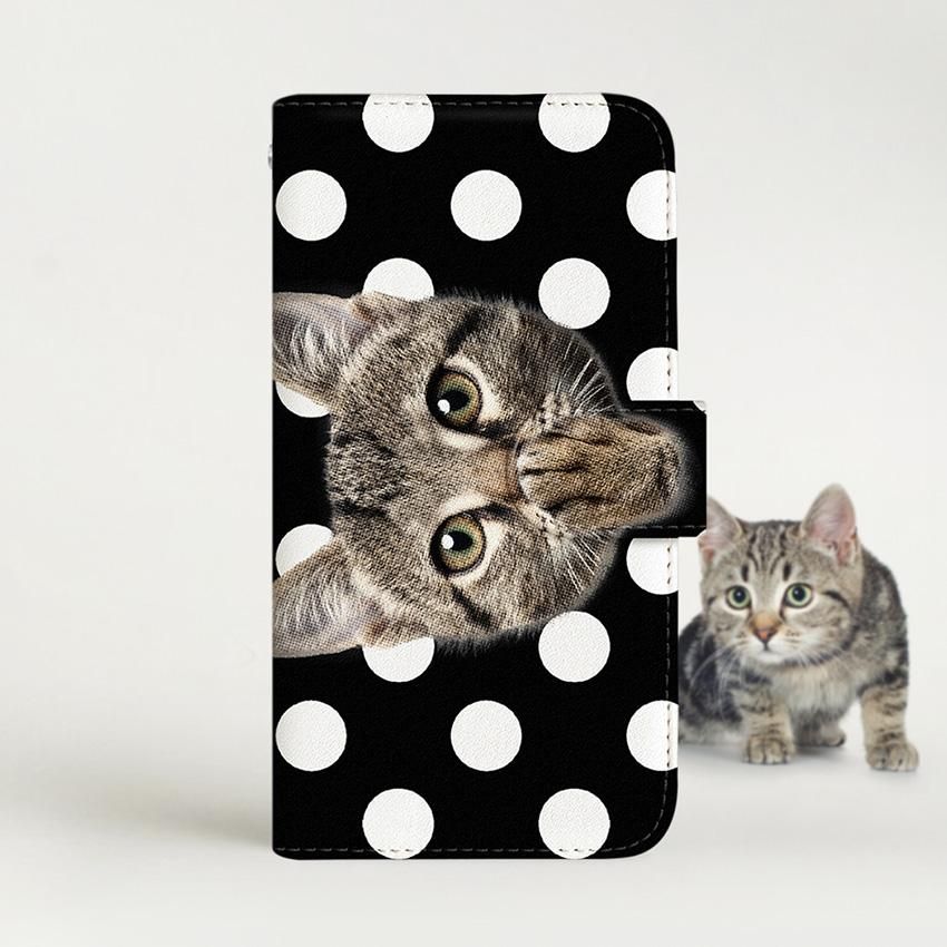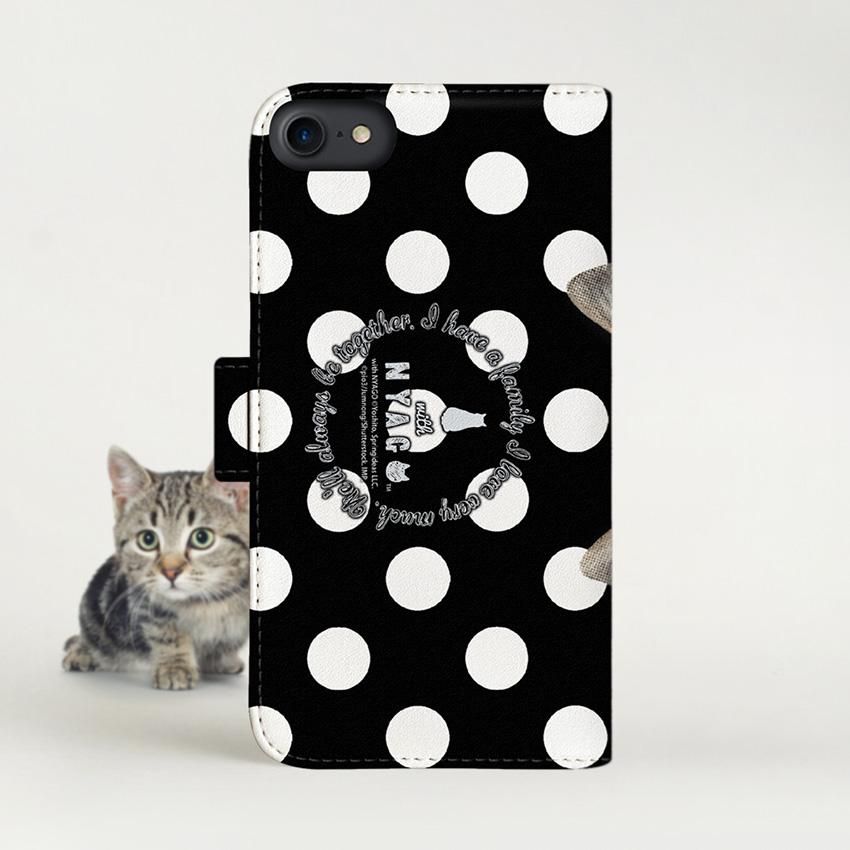 with NYAGO 手帳型 / 厚手 au Galaxy ソラちゃん 肉球をペロペロするにゃー。 ドット 水玉 かわいい猫フェイス手帳 ホワイト ドット 7117