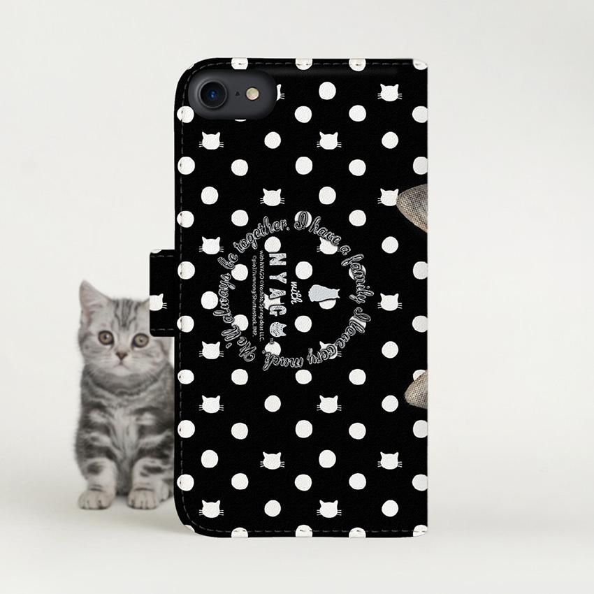with NYAGO 手帳型 / 厚手 au Galaxy ソラちゃん 肉球をペロペロするにゃー。 猫 ドット 水玉 かわいい猫フェイス手帳 ホワイト ドット 7119